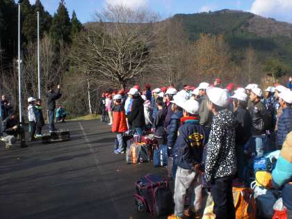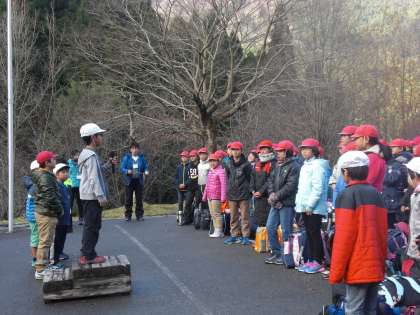 山の家に到着しました。早速,玄関前で入所式です。元気に校歌を歌い,旗を揚げた後,山の家の人の方のお話がありました。「5分前行動」「あいさつをしっかりしよう」等のお話がありました。入所の言葉も大きな声で堂々と立派に言えました。少し寒い中でしたが,しっかりと話をしている人を見て,聞けていました。いよいよスタートです。
