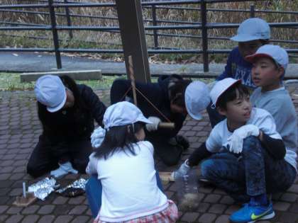 火おこし体験の次は,今日の晩御飯を作る野外炊事が始まりました。
