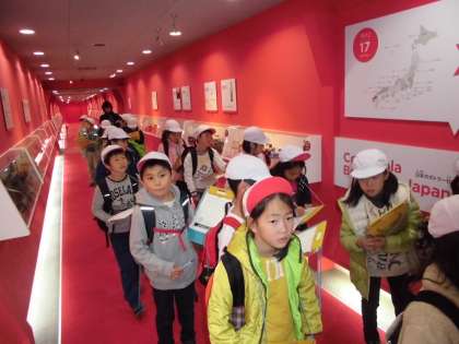 コカコーラ工場に到着♪みんなが大好きなコカコーラがどのように作られているのか,3Dシアターで映像を見たり,工場の様子などを見学したりして学習しました。また,コカコーラ工場で作られているドリンクの試飲をして実際に味を確かめました。子どもたちからは,「おいしー♪」「いつもよりおいしく感じる!」という声が聞こえ,大満足の見学になりました♪