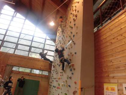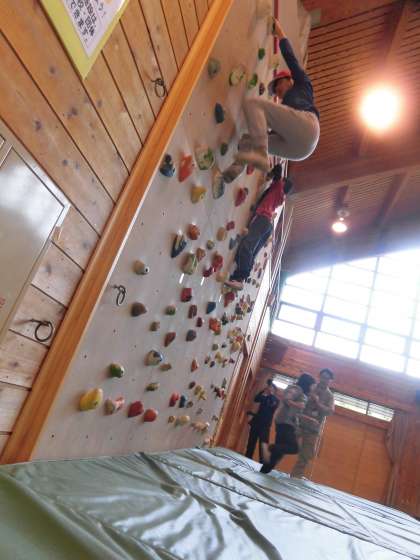ボルダリング・クライミングを体験しました。7mの高さの壁なんて登ったことがない人がほとんどだったと思います。