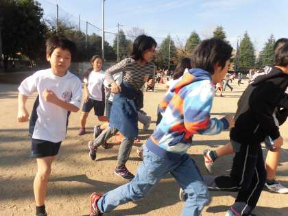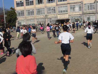 中間休みも他の学年と一緒にランニングを行っています。