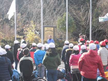 とうとう山の家に到着して入所式が始まりました。山の家の職員さんからの話を聞いてこれからの3泊4日に想いを馳せている子が多くいました。