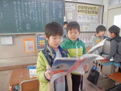 国語科で「わたしはおねえさん」という物語的文章を読み,自分と登場人物の“すみれちゃん”を比べました。“似ているところ”と“違うところ”をノートに書きまとめた後に行った友達との交流では,物語を読み,それぞれが違うことを感じていることに気付くことができました。