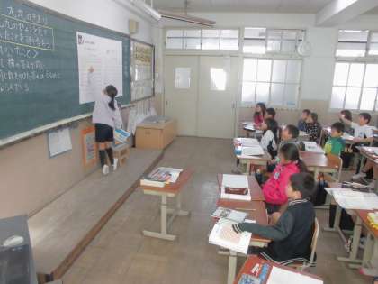 算数科で「九九のきまり」を学習しています。この日は,九九の答えが書かれた表を見て,答えの増え方についての決まりをクラス全体やグループで話し合いました。冬休み前に一生懸命に覚えた九九に隠されたきまりを,この学習を通して解き明かしていきます。