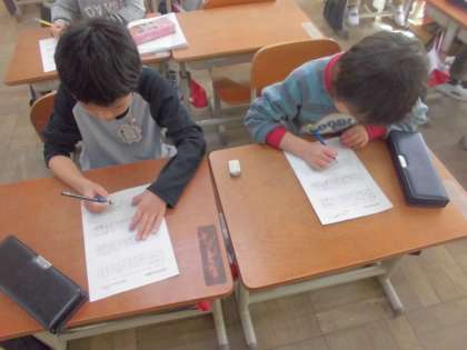 算数の時間に,マス計算に取り組んでいます。