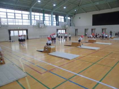 体育の時間に「とび箱あそび」をしました。
