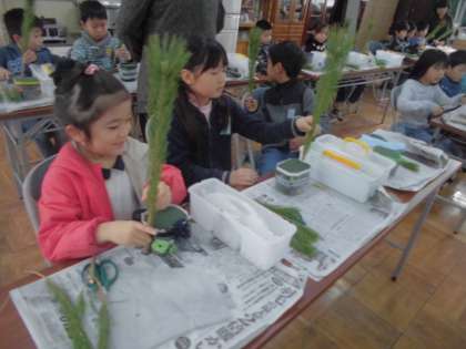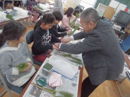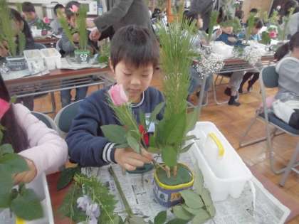 今日は生活科の学習で「生け花」を体験しました。ほとんどの子どもたちが初めてという中で,校外から来られた生け花の先生方に少しずつ教わりながら,一生懸命に花を生けていく子どもたち。その表情はとても真剣で,一人一人が華やかで素敵な作品を仕上げていました。最後の感想交流では,たくさんの子どもたちが「家でもまたやってみたい」と話すなど,身近に花のある生活に興味をもつことができたようでした。