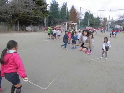 27日(金)に大なわ大会本番を控えている2年生。始めた頃は引っかかることが多かった人も,何度も練習する中で,少しずつ上手に跳べるようになってきました。また,みんなで跳べた数を大きな声で言いながら取り組むなど,真剣度も上がってきました。本番まであと少し。心を一つにしたがんばりに期待しています。
