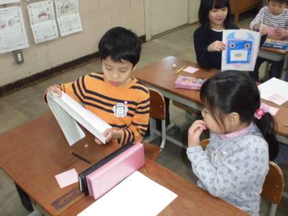 国語科「しらせたいな,見せたいな」で,1年生は昆虫について調べ,まとめる学習をしました。今週は,その発表をしました。