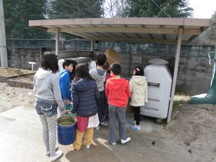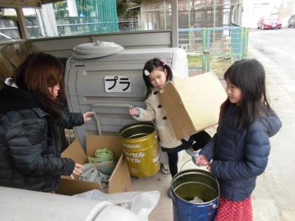 毎日の掃除の後には,ゴミ捨てがあります。決められた場所にゴミを持っていくと,用務員さんがやさしく受け取って返してくれます。子どもたちも「お願いします。」と「ありがとうございました。」と元気にあいさつしていました。