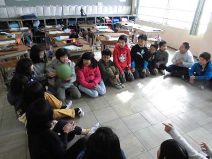 今日の中間休みには,みんな遊び会社が爆弾ゲームをしてくれました。ボールがまわってくるたびに「キャー!!」や「速く速く,あっー!!」と一喜一憂していました。罰ゲームは「面白い話」でしたが,どんな話がこようとも,みんなで盛り上がっていました。