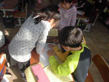 その日に向けて,今日はグループごとに当日のせりふを考えました。