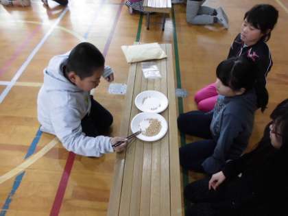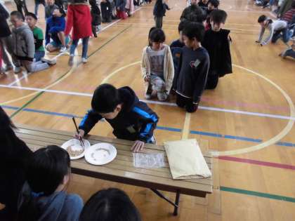 今日の中間休みに,「豆つまみ大会」がありました。緊張もあいまって,普段の力が出せなかったと嘆いていた子もいましたが,10秒という短い時間に集中して豆に向かっていた子はみんな輝いていました。