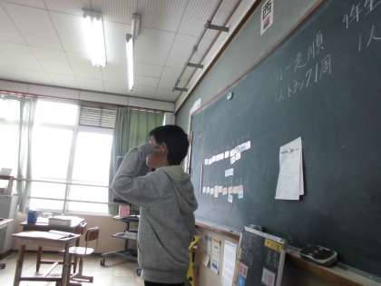 来週にある「リレー大会」にむけて走順を決めました。担任は10分と表示されたタイマーを押しただけです。すると自然な流れで代表委員がまとめ役となり,子どもたちだけで時間内に決めきってくれました。前に出た2人はもちろん,意見を出す人も時間や進行を気にしながら話し合っている姿は成長しているなと実感できました。
