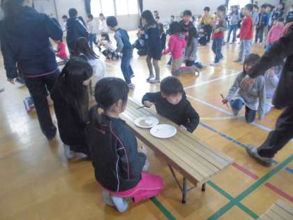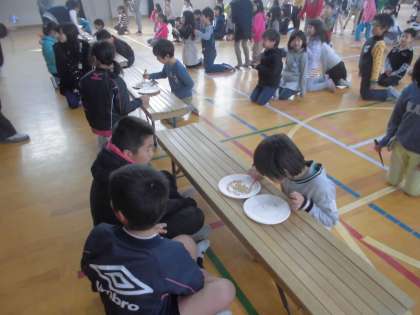 結果は2組が優勝でした。来年はたくさんつまめるよう,正しい持ち方を心がけていきましょう。今日は宝探し給食だよ〜〜