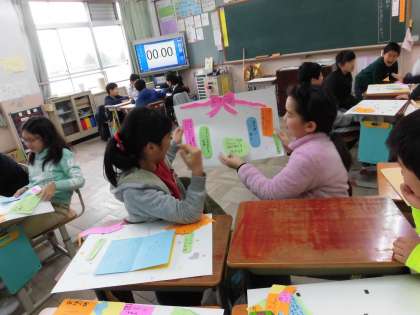 自分の発表だけでなく友達の発表のお手伝いもしています!