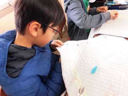 中には,玉止めや玉結びの方法を忘れてしまい,教科書を見ながらの子もいます!
