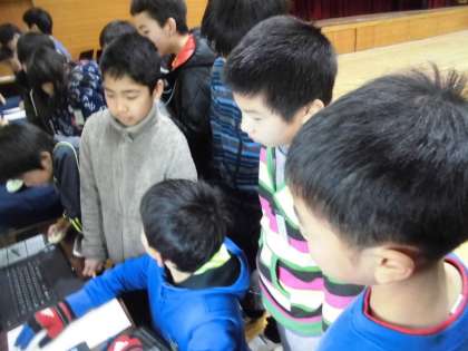 今日は,造形展の鑑賞をしました。年に1回の他学年の作品をみることが出来る機会に子どもたちのテンションは上がりっぱなしでした。他にも,中学生の作品や地域の方の作品にも興味津々で鑑賞していました。毎年人気のコンピュータークラブの作品には,常に人だかりができていました。