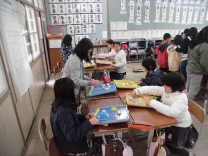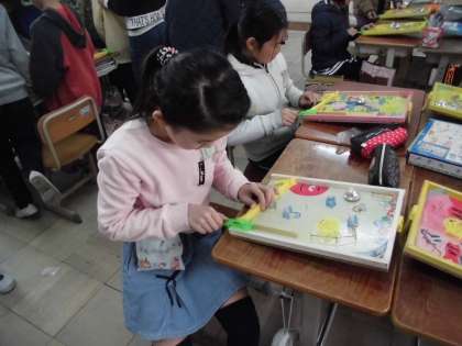 今日は完成したコリントゲームで遊びました。全員のコリントゲームを試している子や,一つのコリントゲームで友だちと遊んでいる子など,それぞれが思い思いの遊びかたをして楽しんいました。