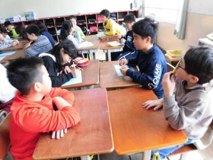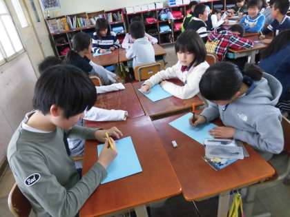 班ごとに考えたものを黒板に貼ってみると同じキーワードがたくさん!!
