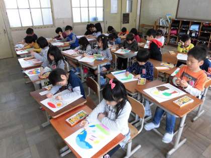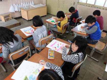 図工の時間に,自分だけの「ひみつのたまご」を作りました。形や塗り方を工夫して,素敵なたまごが完成しました。