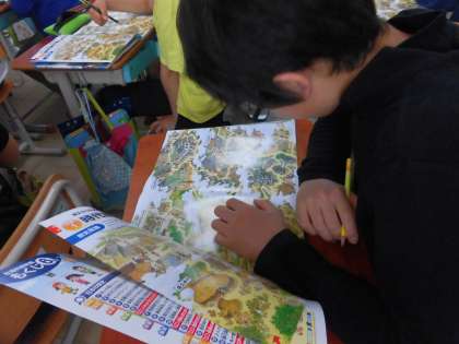 6年生は歴史の学習を行いますが,初回の今日は資料集にある歴史旅行をしました。