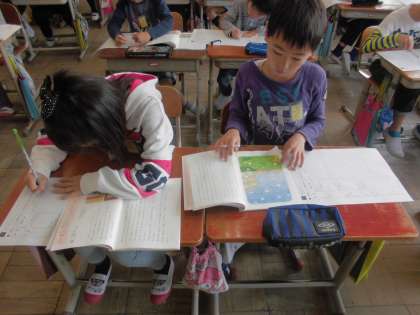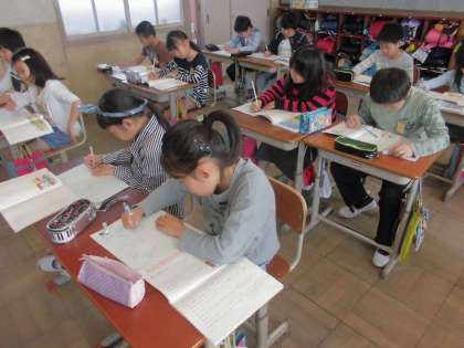 と,苦労している子もいましたが,教科書を見ながら一生懸命書いていました。