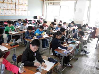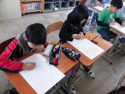 顔の輪郭や目,鼻,口,耳などの特徴をしっかりと捉えて,真剣に取り組むことができています。色付けもとても大切!!丁寧に仕上げてほしいと思います。