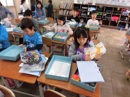 それから教科書のお話を読み,実際に自分の机の中がどうなっているのかを見てみました。「いらないゴミが入っていたからきれいにしたよ。」「きれいにすると気持ちいい!」とやる気満々で整頓をしていました。