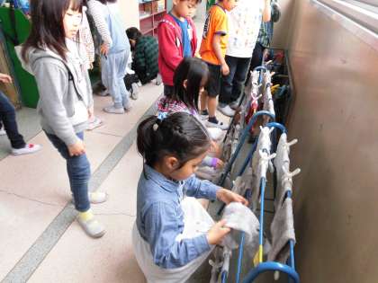 ぐちゃぐちゃになっている机の中やトイレのスリッパの写真を見て,「えーきたないー!」「きれいにしなくちゃ!」との声がたくさん聞こえました。