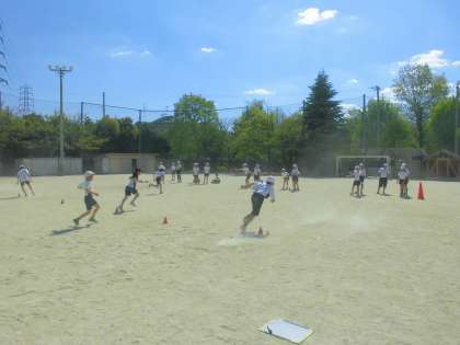 今日は一時間目だったので,一人一人のタイムを計ったり,直線でバトンをつないだりしました。