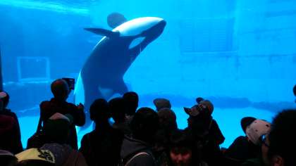 シャチのサービス精神にみんな大興奮!!「うぉー‼」「でっけー!!」と大人も子どもも大騒ぎ!!