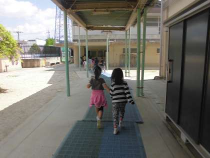 2年生に優しく手をひいてもらい,とても喜んでいました。
