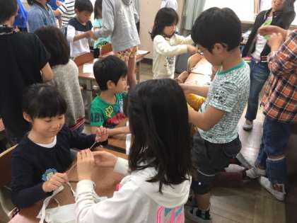 最初は恥ずかしそうにしていた子も,1年生が回せた時には一緒になって喜んでいました。教室の中は,「まわせた!!」という1年生と,「うまいやん!!」と拍手を送る5年生の素敵な言葉と笑顔であふれていました。