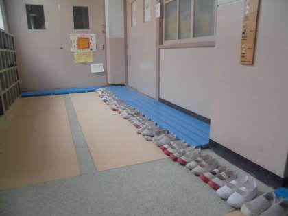 1・2時間目のみさきTIMEで整理整頓などの話をしていたこともあり,いつにもましてきれいに上靴を並べていました。