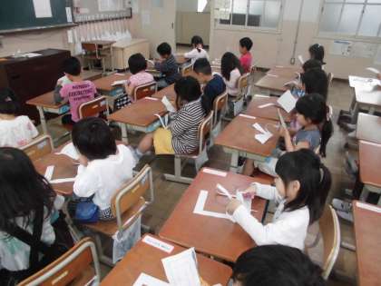 みんな紙を上手にまわしながら,切ることができました。