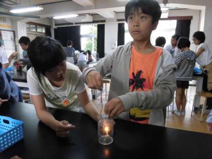 燃える前と燃えた後での空気の成分の違いを調べます。