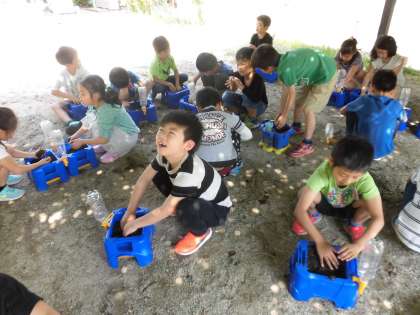 「ふわふわの土を作ろう!」と手で混ぜていきました。