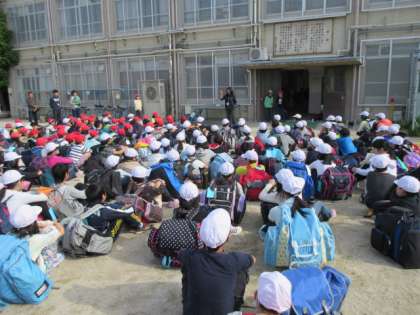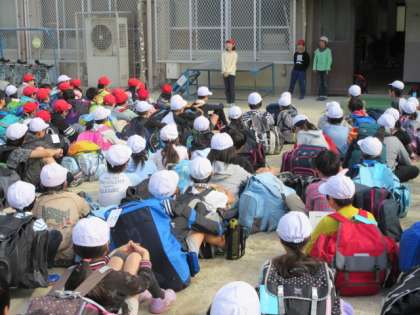 待ちに待ったみさきの家での宿泊学習です。早朝にもかかわらず,みんなの顔がニコニコとうれしそうです。司会や出発の言葉を担当した子どもたちも立派にその役割を果たしました。この日のために一生懸命に練習をしたんだね。