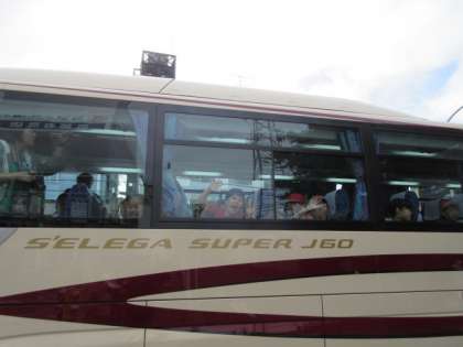 いよいよ出発です。見送りに来たたくさんの教職員やおうちの方にバスの中から手を振る子どもたちがかわいすぎます。さてどんな思い出を胸に帰ってくるかな。みんな気をつけて,いってらっしゃ〜い!!