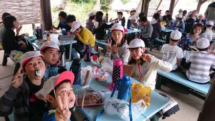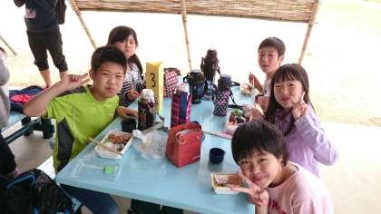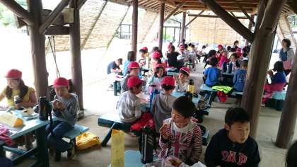 葛野小学校をでたのが8:00。今は12:30。お腹がグルルーとなるのを我慢して約四時間!!おまちかねのお弁当タイム♪もりもり食べて午後の活動も頑張るぞー!!