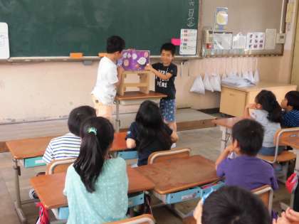前に立つ2人は緊張しながらもがんばって読み聞かせをしてくれました。