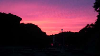 「せんせーい!みてー!」と子どもが指差す方に目をやると…西の空が見事なグラデーション♪ 夜の星空観察はあいにくの曇り空だったため、満点の星を見ることができませんでした。残念。なので自分たちで星空をつくってみました♪どうでしょうか?きれいな星空でしょ??