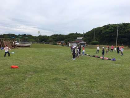 気持ち良い天気の中,芝生の上でドッジボールやサッカーをして体を動かしてします!