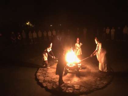キャンプファイヤーです。この特別な瞬間を一生の宝物に・・・。いよいよみさきの家も明日が最終日。名残惜しいとは思いますが,みんなが元気に帰ってくるのを待っていますよ。