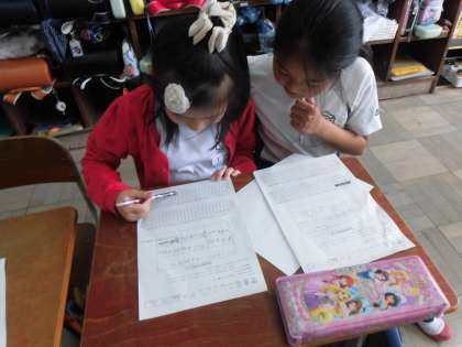 今日は道徳で「できることさがしゲーム」をしました。まずは,自分のできることを考えて,友だちと見せ合いました。ゲームでは,友だちと同じことができていたら「いっしょポイント」,違うことができていたら「とくべつポイント」をゲットしていきます。最終的にどちらかのポイントが多くなった理由を考えました。そこから,子どもたちはそれぞれが多くのことを感じ取っていました。