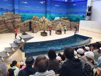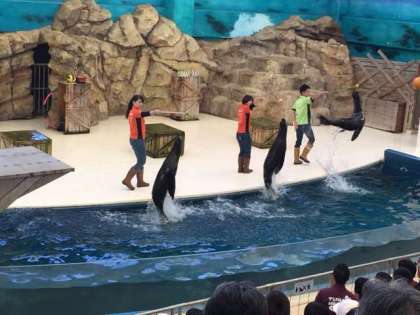 三頭のアシカがスピンや輪くぐり、キャッチボールなど、いろいろな技を見せてくれました。