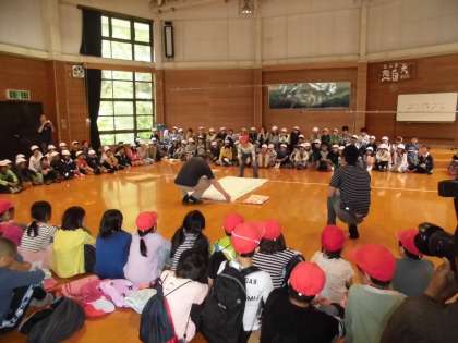 所員さんの話を聞いて,布団の敷き方や畳み方を教わりました。