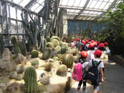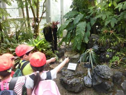 植物園に着くと,2列に並んで温室に入りました。