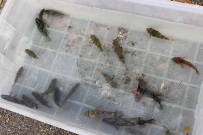 思っていた以上にたくさんの子ども達が魚をgetすることができ,先生は大喜び!